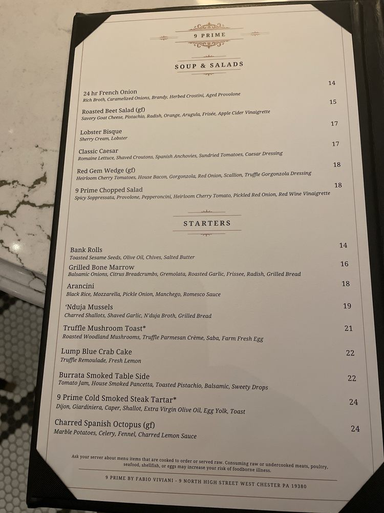9Prime, located in West Chester, PA, is a top-notch restaurant offering a blend of steakhouses, bars, and seafood. With a classy ambiance and a full bar, 9Prime ensures a memorable dining experience. Customers rave about the perfectly cooked steaks, such as the steak filet and the NY strip with blue cheese crust and brandy au poivre. The seafood options, like the Sea Bass and scallops, are also highly praised for their freshness and flavor. The truffle fries, lobster mac and cheese, and peanut butter mousse are standout sides and desserts. The service at 9Prime is exceptional, with attentive and knowledgeable staff like Kendel, who enhance the dining experience. Overall, 9Prime offers a unique and elegant dining experience that rivals top steakhouses in the area, making it a must-visit for any culinary enthusiast.